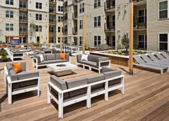 Residences are available in studio, one-, and two-bedroom floor plans, and include granite countertops, Energy Star appliances, energy-efficient gas cooking, high ceilings and oversized windows, large capacity washers and dryers, walk-in closets, as well as terraces and patios in select floor plans.