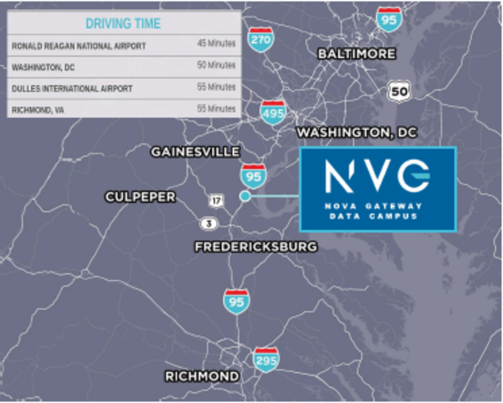 Located in Stafford County, just three minutes I-95, Northern Virginia Gateway Data Center will support nearly 1M SF of Data Centers. Stafford County offers one of the lowers personal property tax rates with significant rebates and an accelerated asset depreciation schedule.  Additional details:
